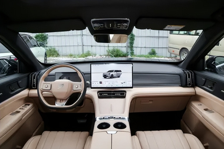 进入车内,捷途山海L7 PLUS所营造的第一感觉就是“科技氛围浓厚”。中控台采用了环抱式布局,大面积软质材料和皮革包覆,辅以细腻的缝线工艺,触感与观感都十分讨喜。对于一台主打家庭用户的SUV来说,这种温馨且不失质感的设计无疑很加分。最吸引眼球的莫过于15.6英寸的中控屏,官方称之为“向日葵屏”。这块屏幕不仅分辨率高、色彩细腻,而且具备自动旋转功能,可以根据语音指令转向主驾或副驾,真正做到“谁需要,谁掌控”。这一设计在同级别车型中相当少见,对于副驾乘客来说,在长途出行时可以独立操作娱乐或导航,不必总是打扰驾驶员。