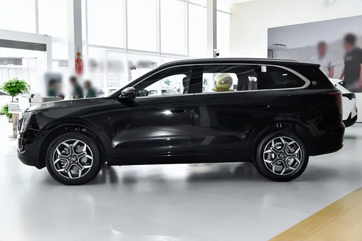 车身侧面则走的是简洁大方的路线。车长接近五米,轴距达2820mm,这样的尺寸不仅带来了修长的车身姿态,也直接保证了车内空间表现。腰线从前翼子板一路延伸到尾灯,线条凌厉,增强了力量感。车窗采用镀铬饰条包裹,与车顶行李架呼应,营造出较强的层次感。值得注意的是,山海L7 PLUS在高配车型上提供了20英寸的大尺寸轮毂,造型动感,配合宽大的轮拱,使整车气场更足。与之搭配的是宽胎,能够进一步提升抓地力与稳定性,兼顾了美观与实用。